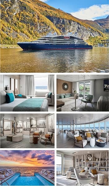 The five-star Le Champlain, part of the PONANT Explorers expedition yacht series, features 92 cabins accommodating 184 guests. Designed with advanced eco-friendly technology, its “Clean Ship” certification highlights energy efficiency and marine protection. Compact yet luxurious, it navigates shallow bays and sensitive environments while offering safe, comfortable voyages with custom stabilizers. (9 nights)