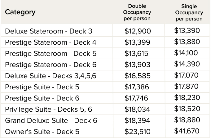 Starting at $12,900 per person